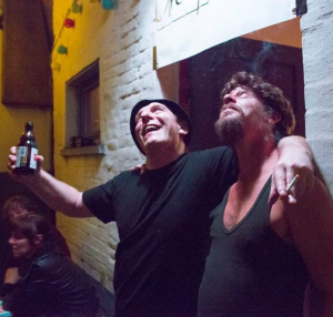 Jackjohannes Hemp (links) en Franky Bordo (rechts) tijdens Droef Veto in café Het Volkshuis. Foto: Philip Volckaert.